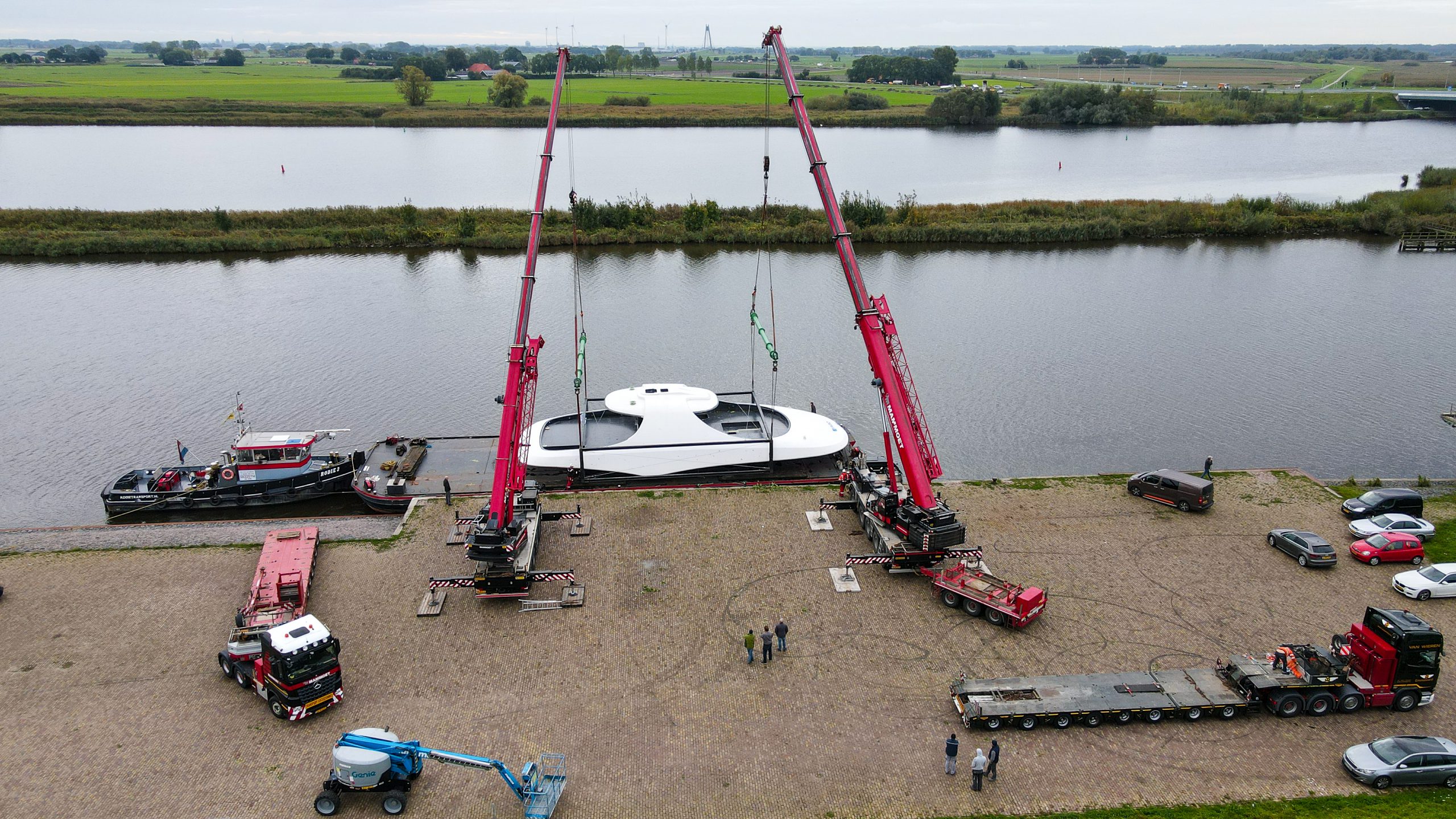 In the night of 8 to 9 October an enormous lightweight colossus (23 x 11 x 5m) was waved goodbye by a proud team of VABO Composites staff. After months of hard work and craftsmanship, the time has finally come: the largest single-piece product to date has arrived safely in Amsterdam where it will ‘crown’ a prestigious 77m superyacht. VABO's permanent transport partner and neighbor, Van Wieren Transport, once again took care of transport for this exceptional structure – and did so in a fantastic way.