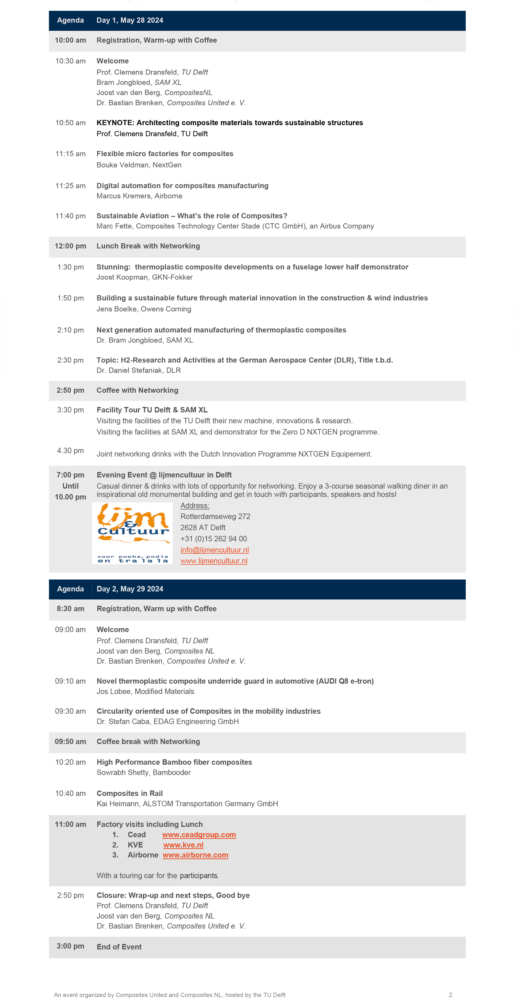 - Member Admission ticket (for CompositesNL and Composites United members only) €195,-